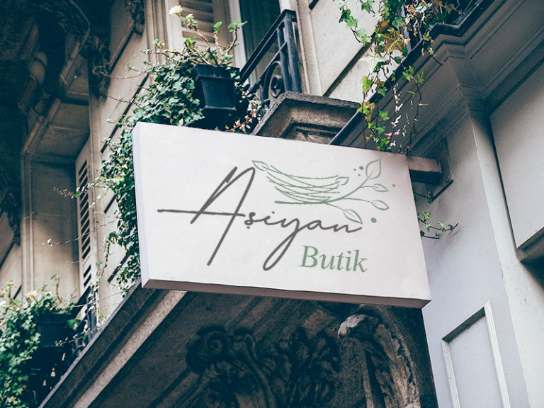 Aşiyan Butik için hazırladığım logo tasarımında koyu gri ve pastel yeşil renklerini kullandım.